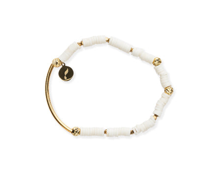 Handmade with love in Uganda, this bracelet was handcrafted with 18K gold-plated brass and clay beads. Clean with dry cloth.