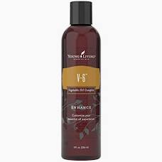 For direct application, blend 1 drop essential oil in 5-40 ml Young Living V-6® Enhanced Vegetable Oil Complex. May also be used to create your own massage oil blend for topical applications by adding 15-30 drops essential oils to 30-60 ml Young Living V-6®. Young Living V-6® may be applied to skin prior to the application of essential oils. Stronger oils (e.g., cinnamon, clove, peppermint, thyme, oregano, etc.) require more dilution than gentler oils (e.g. spruce, fennel, sage, etc.).
